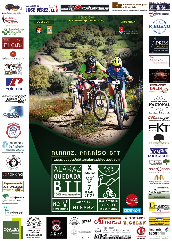* Los dorsales podrán retirarse el viernes 5 y sábado 6 de Mayo en el Decathlón de Salamanca, en horario comercial. También se podrán recoger el día de la quedada, a partir de las 8:00h, en la Plaza de Alaraz.