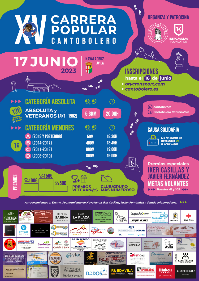 * Los dorsales retirarse el mismo día de la carrera desde las 12.00 horas a las 14.00 horas y de 16.00 a 19.30 en el lugar de celebración de la prueba.