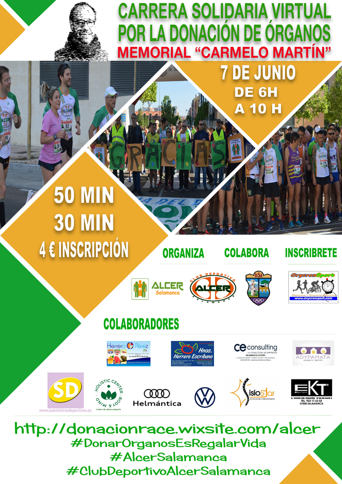 Bienvenidos a la CARRERA SOLIDARIA VIRTUAL POR LA DONACIÓN DE ÓRGANOS “MEMORIAL CARMELO MARTÍN” organizada por ALCER SALAMANCA Y EL CLUB DEPORTIVO ALCER.